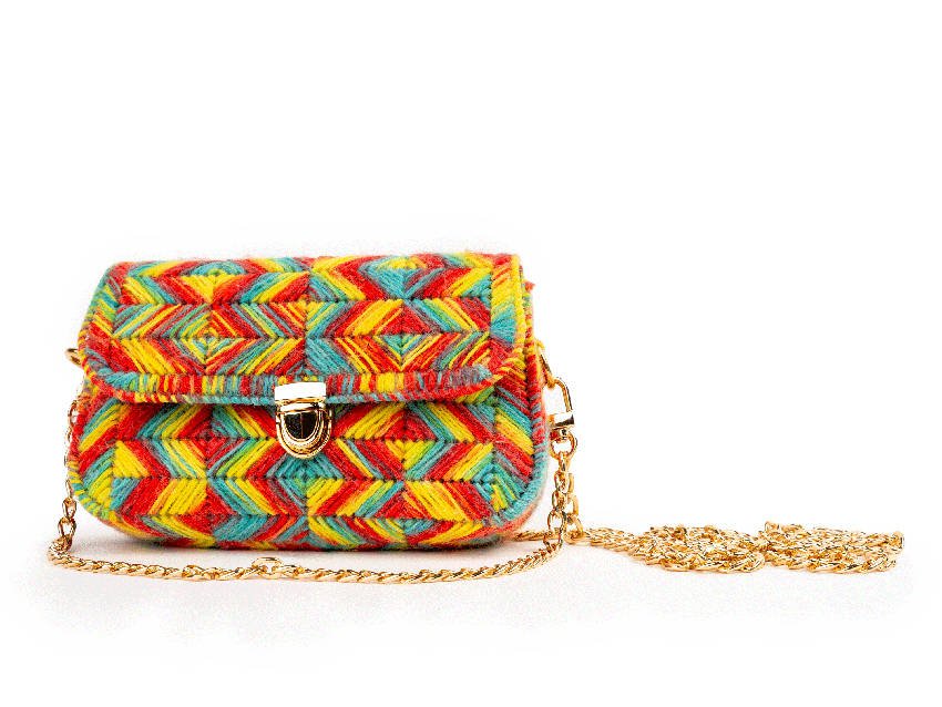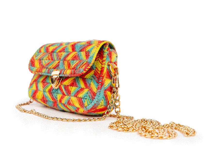 SUNBURST es un estallido de optimismo hecho bolso. Con un patrón de espigas multicolor que combina amarillo, rojo, azul y naranja, este diseño artesanal transmite movimiento, fuerza y vitalidad. Su forma rectangular y estructura firme lo hacen práctico sin perder personalidad. El cierre metálico dorado y la cadena a juego completan una pieza que grita verano, libertad y autenticidad. Ideal para quienes se atreven a destacar con estilo.